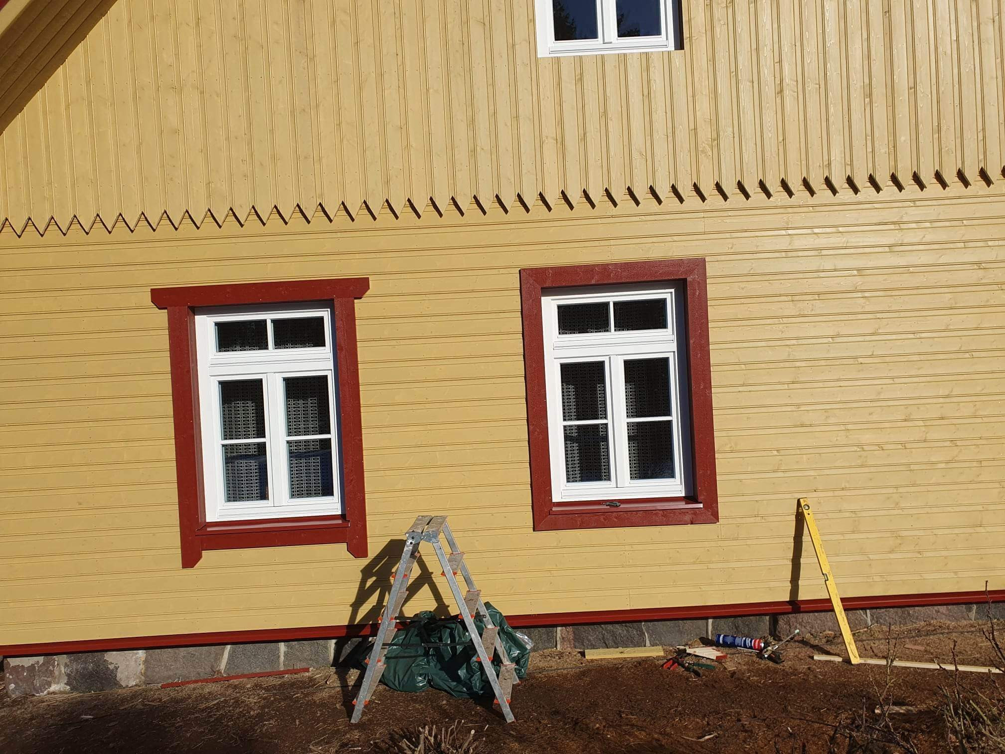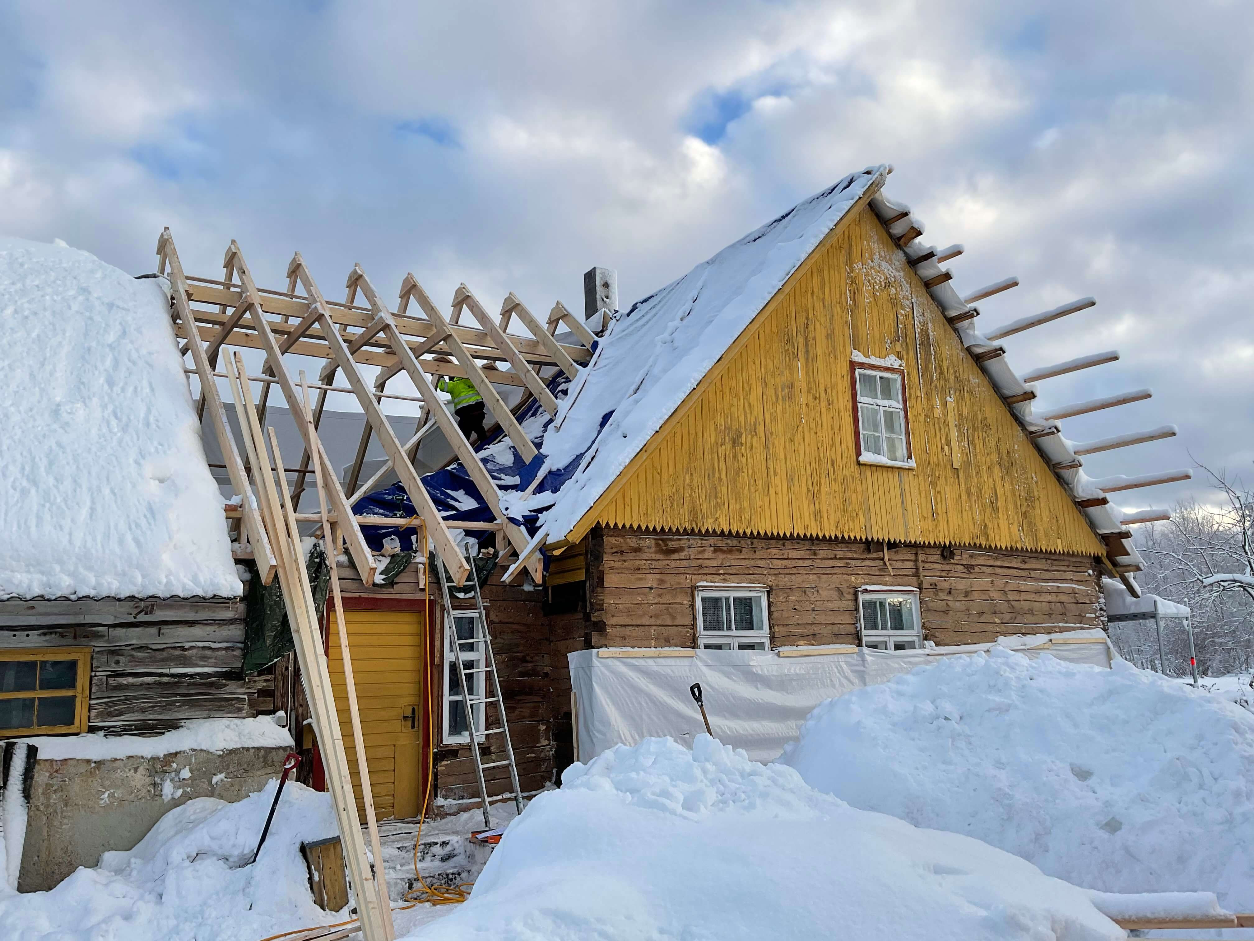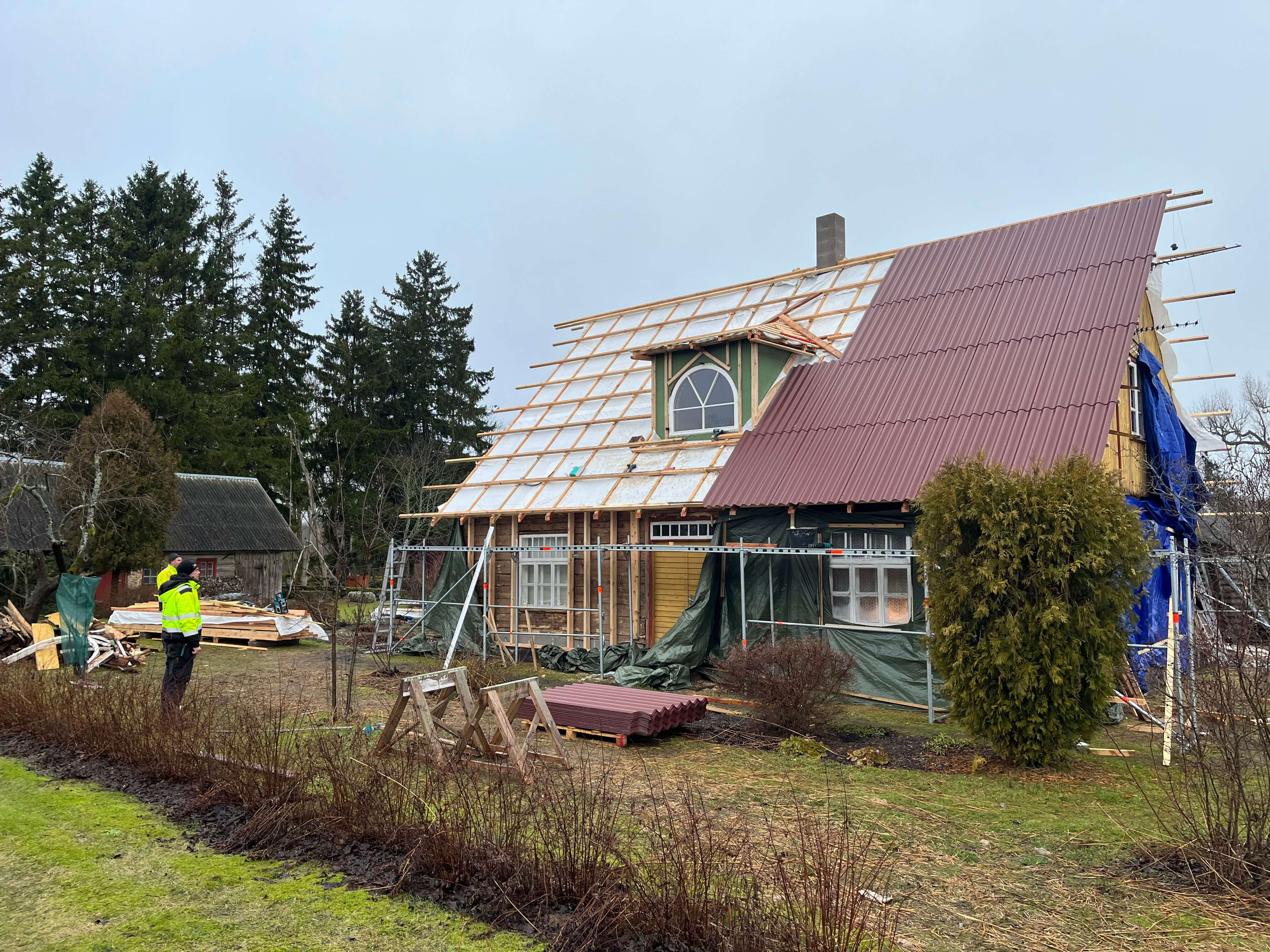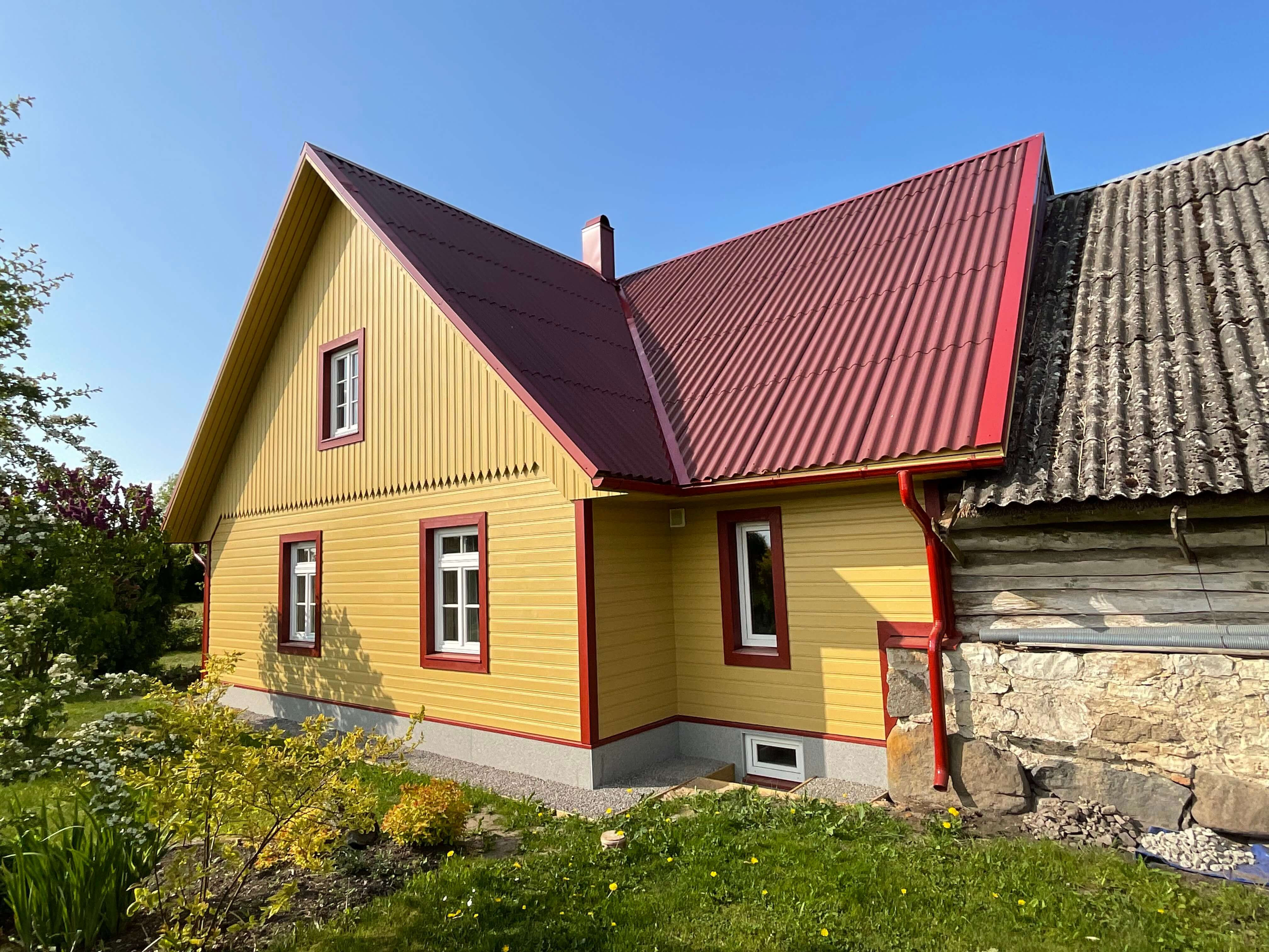Eramu eterniitkatuse ja puitfassaadi ehitus